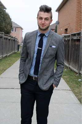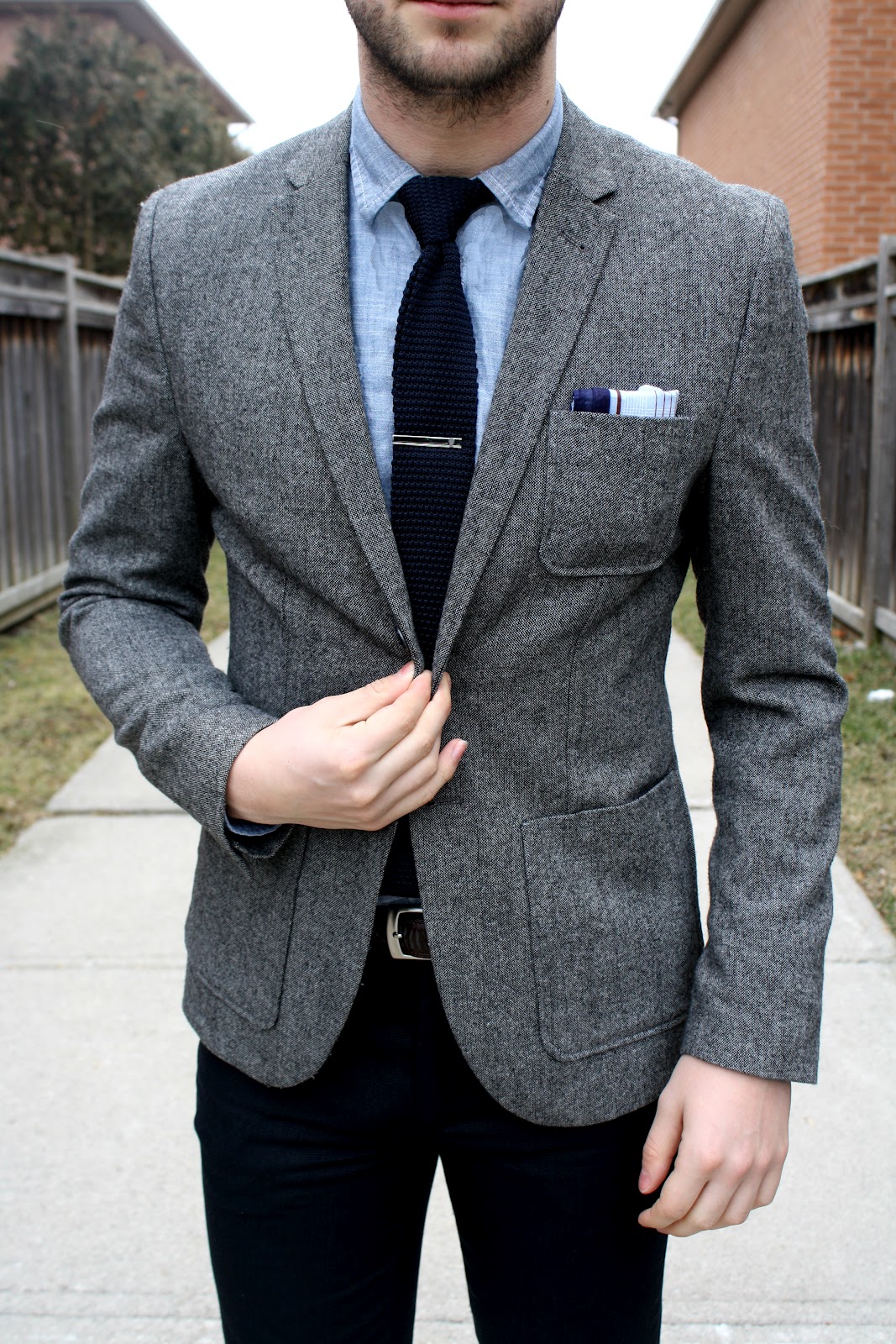 Tip: Wanna be formal and not look like your wearing a suit? Go with pieces that have casual appeal such as a knit tie and a chambray shirt!